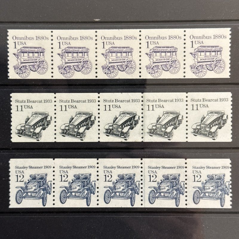 Grade: F/VF (Fine/Very Fine)3 Different Transportation Coil PNC5 strips. These are all Miscut Errors / EFO where the Plate number is split between the top and bottom. MNH