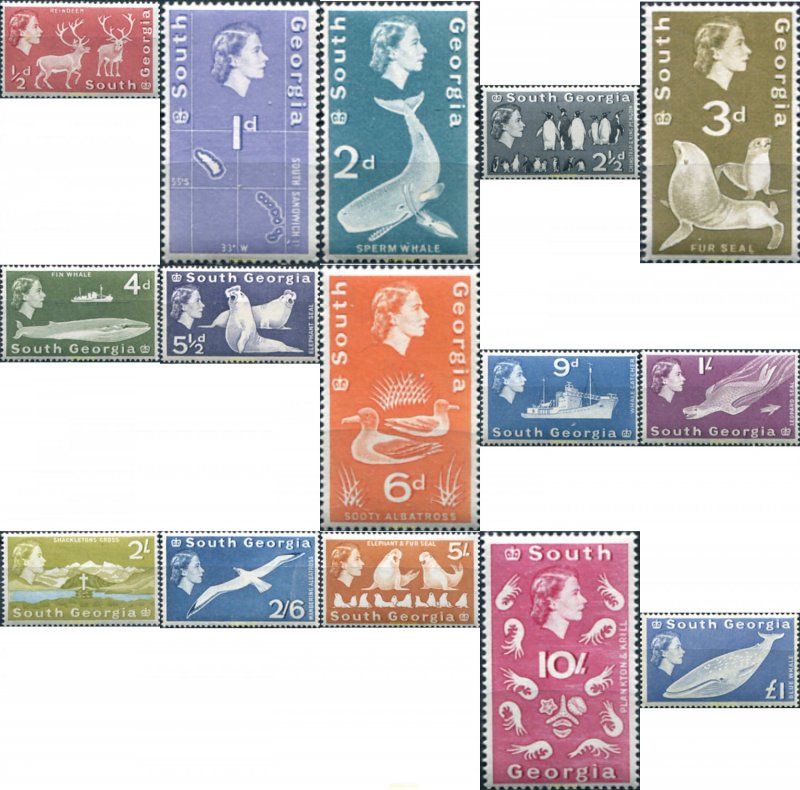 Ref.SEG-BSC-312222 MNH GEORGIA SUR Y SANDWICH SUR 1963 FAUNA Michel: 9/23 Yvert: 9/23 Domfil: 963.1/15