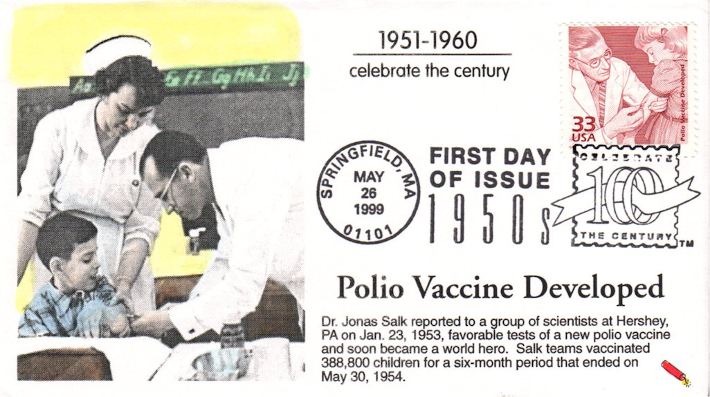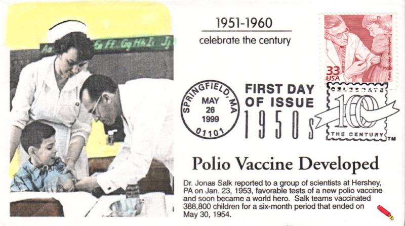 #3187a Polio Vaccine - Celebrate the Century first day cover by Dynamite Covers. The corners are creased. Postmark State: MA City: Springfield Year: 1999 Month: 5 Day: 26Seller Information