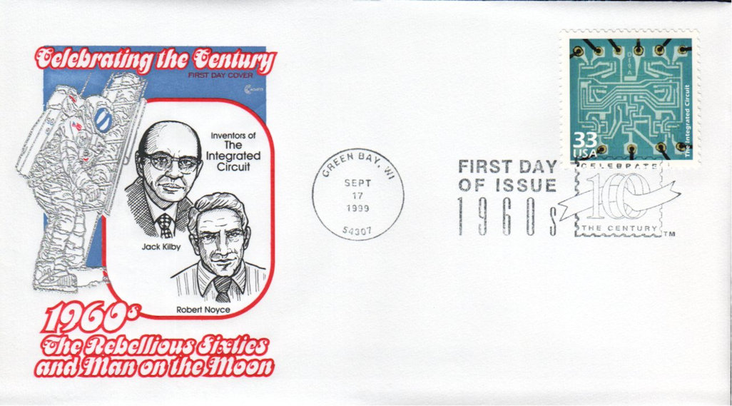 #3188j The Integrated Circuit - Celebrate the Century first day cover by Covercraft Cachets. Date and original cost are penciled on the reverse. Postmark State: WI City: Green Bay Year: 1999 Month: 9 Day: 17