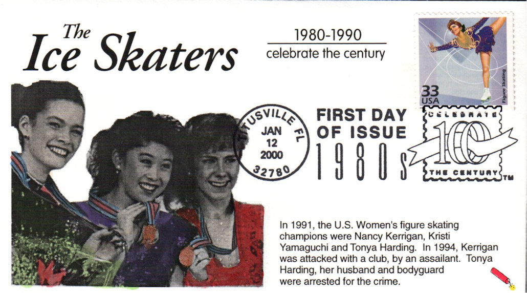 #3190e Figure Skating - Celebrate the Century first day cover by Dynamite Covers. The left corners are creased. Postmark State: FL City: Titusville Year: 2000 Month: 1 Day: 12Seller Information