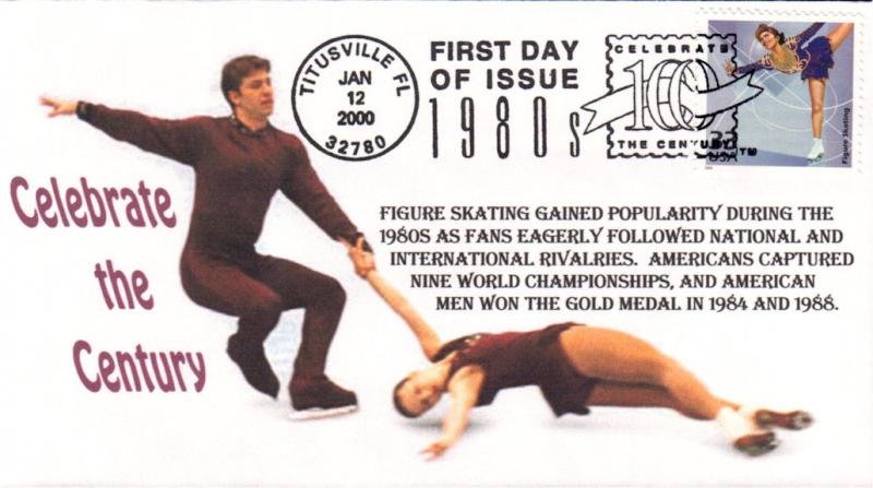 #3190e Figure Skating - Celebrate the Century first day cover by RRAGS. Postmark State: FL City: Titusville Year: 2000 Month: 1 Day: 12