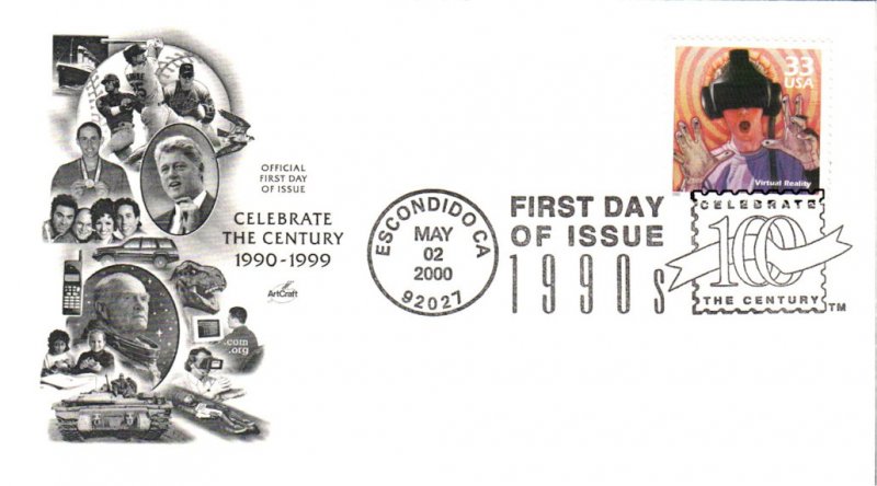#3191j Virtual Reality - Celebrate the Century first day cover by Artcraft. Postmark State: CA City: Escondido Year: 2000 Month: 5 Day: 2