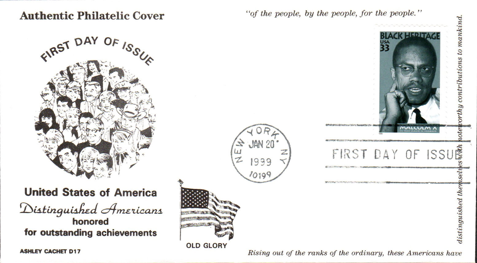 #3273 Malcolm X first day cover by Ashley Cachets. Postmark State: NY City: New York Year: 1999 Month: 1 Day: 20