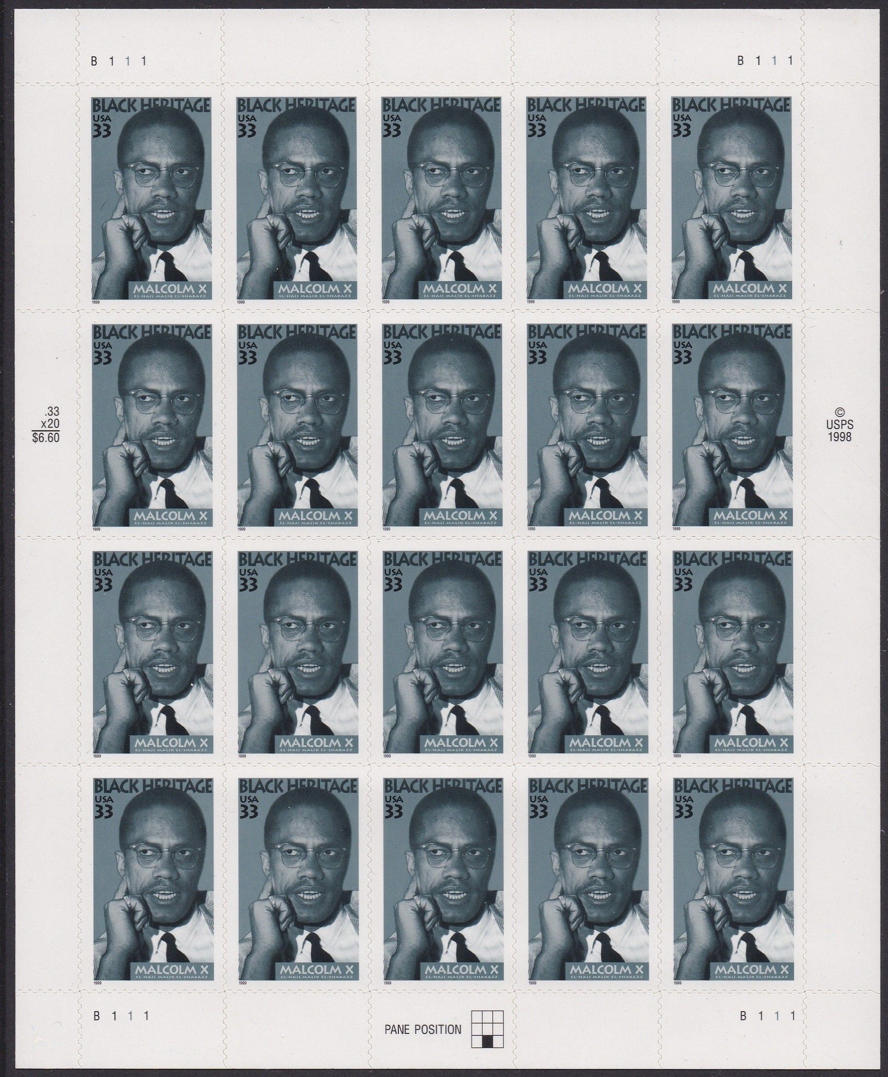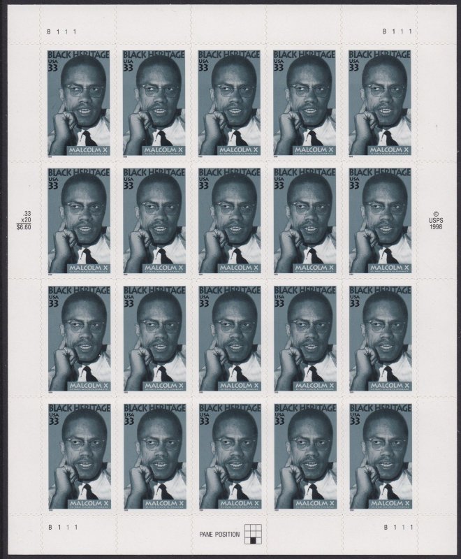 3273 Malcolm X Sheet MNH