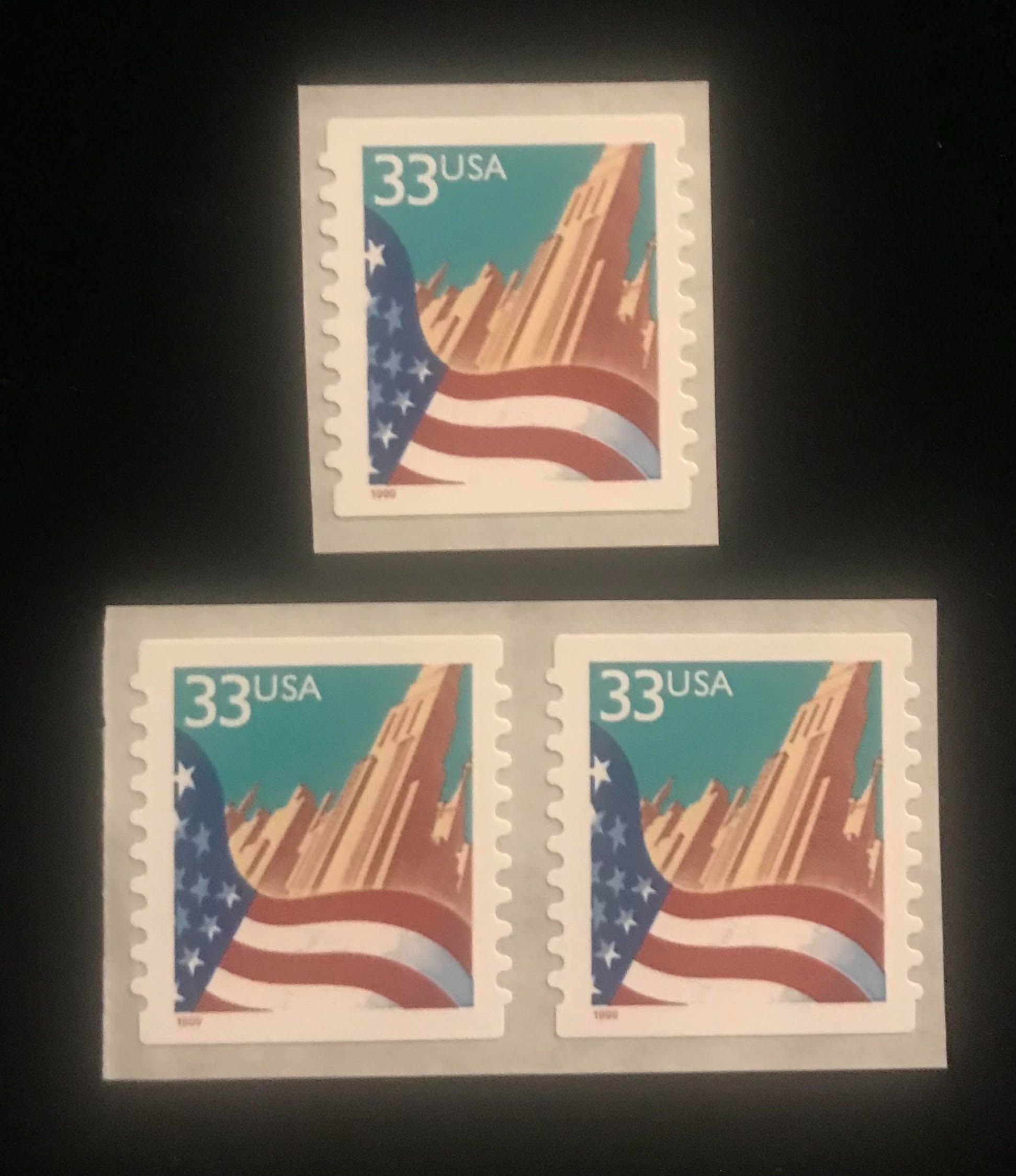 Scott 3282, set of 1 single and 1 pair, MNH self adhesive coil stamps, Flag Over Skyscraper, in nice sound clean condition with F/VF centering. Photos are representative of the stamps, individual stamps may be slightly different but all of equal quality to those shown. Seller is long time member of the American Philatelic Society since 1998.Seller Information