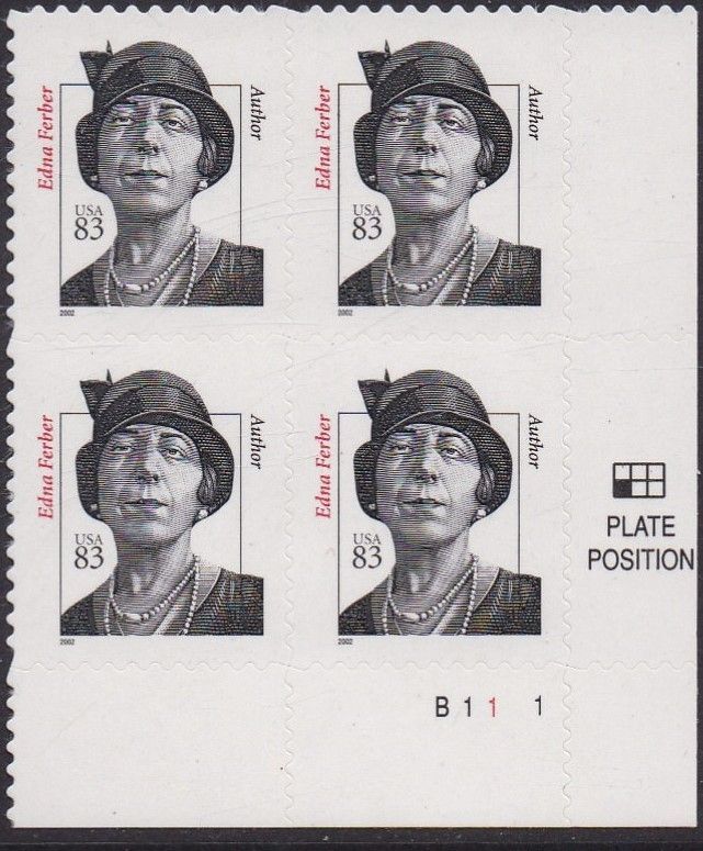 3433 Edna Ferber Plate Block MNH