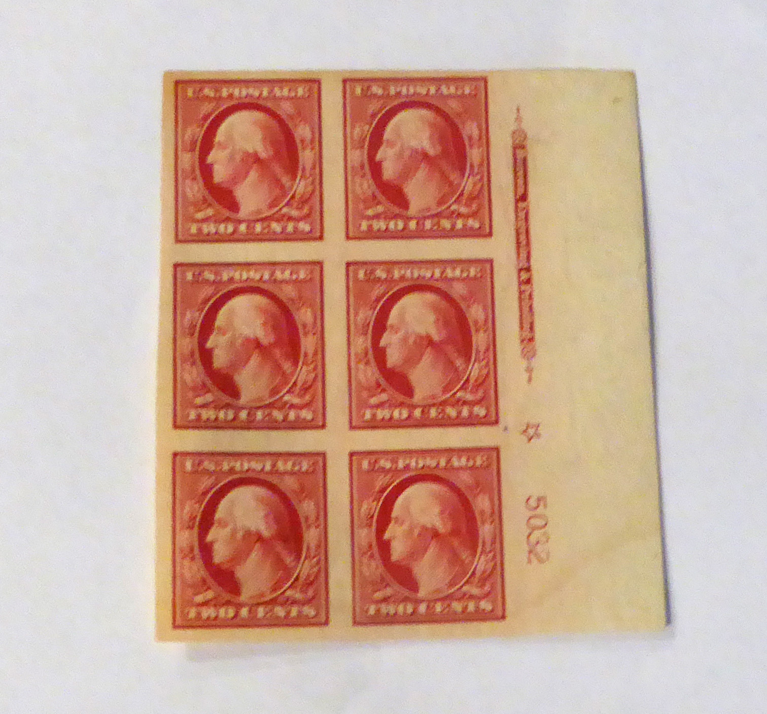 #344 2 cent Washington imperf plate block scott catalogue $70