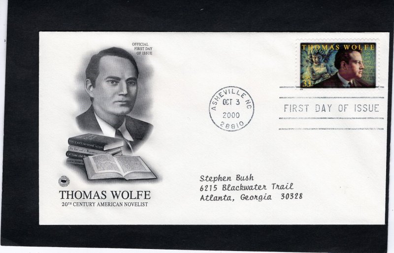3444 Thomas Wolfe, FDC PCS addressed