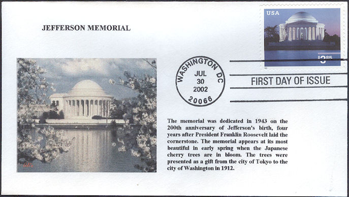 #3647 Jefferson Memorial first day cover by Alto. Postmark State: DC City: Washington Year: 2002 Month: 7 Day: 30