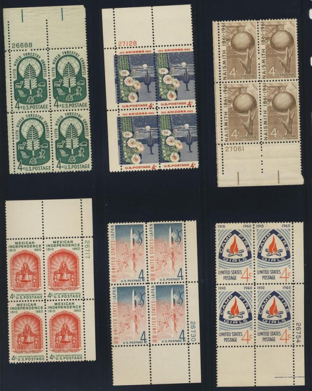 38 diff. 4c plate blocks MNH - starting at face