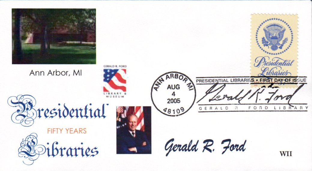 #3930 Presidential Libraries - Gerald Ford first day cover by William Smith II. Postmark State: MI City: Ann Arbor Year: 2005 Month: 8 Day: 4Seller Information