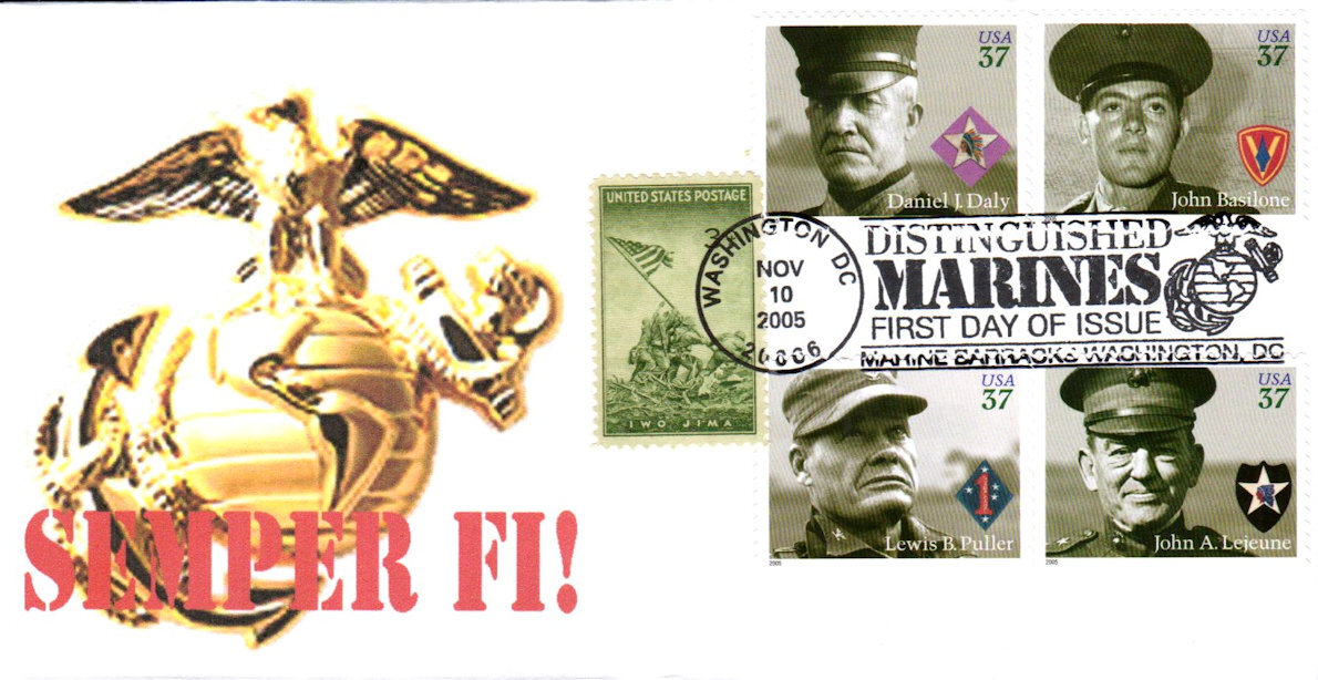 #3961-64 Distinguished Marines first day cover by Junction - Lonegoat. The corners and upper and lower center edges are creased. Postmark State: DC City: Washington Year: 2005 Month: 11 Day: 10Seller Information