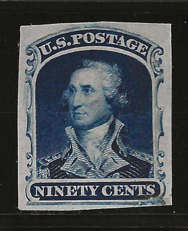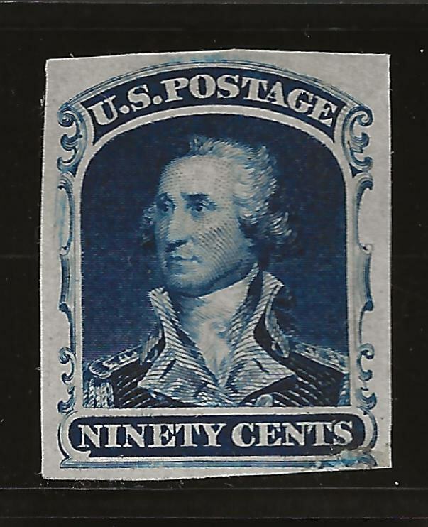Grade: F/VF (Fine/Very Fine)39P3, 90¢ INDIA PROOF, SCOTT $1250 Product Description90¢ BLUE, PLATE PROOF ON INDIA PAPERFINE-VERY FINE, RARE!*********************************************************************************************************************All stamps, collectibles and other items are guaranteed sound unless otherwise noted in the description.We mail out our shipments on Tuesday and Friday mornings (not including holidays.) Lots purchased late on Fridays will be shipped the following Tuesday (not including holidays). We are one of the largest companies in the United States, specializing in the sale of U.S. and Worldwide Stamps. Our parent company is in good standing with ASDA and APS since 1973.We are open Tuesdays through Saturdays. However, we can still communicate with you via cellphone emails. So, if you have any questions, please do not hesitate to contact us and you should receive a prompt reply. Additionally, the U.S. Mail has been taking much longer than usual in some cases. Please be patient and if by two weeks you have not received your item, please notify us.Payment TermsAuction: Payment through PayPal to be received and collected within four (4) days of end of auctionBuy It Now: Payment through PayPal to be received immediately after purchase. However, if there needs to be a revision of the price to include foreign shipping cost, once that is done, then immediate payment is required.Shipping Terms:Free shipping in U.S. Only, When OfferedInternational: As per Hip protocol (OR $20 MINIMUM TO BE PAID IN ADVANCE)Please allow 3-5 business days (not including holidays, weekends, or Mondays) for your item to be shipped. Your favorable feedback is much appreciated. We will always be able to resolve issues you may have with an item you purchased.Thank You for your Patronage!