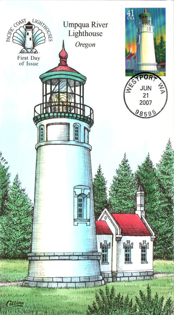 #4149 Umpqua River Oregon - Pacific Lighthouses first day cover by Fred Collins. Postmark State: WA City: Westport Year: 2007 Month: 6 Day: 21Seller Information