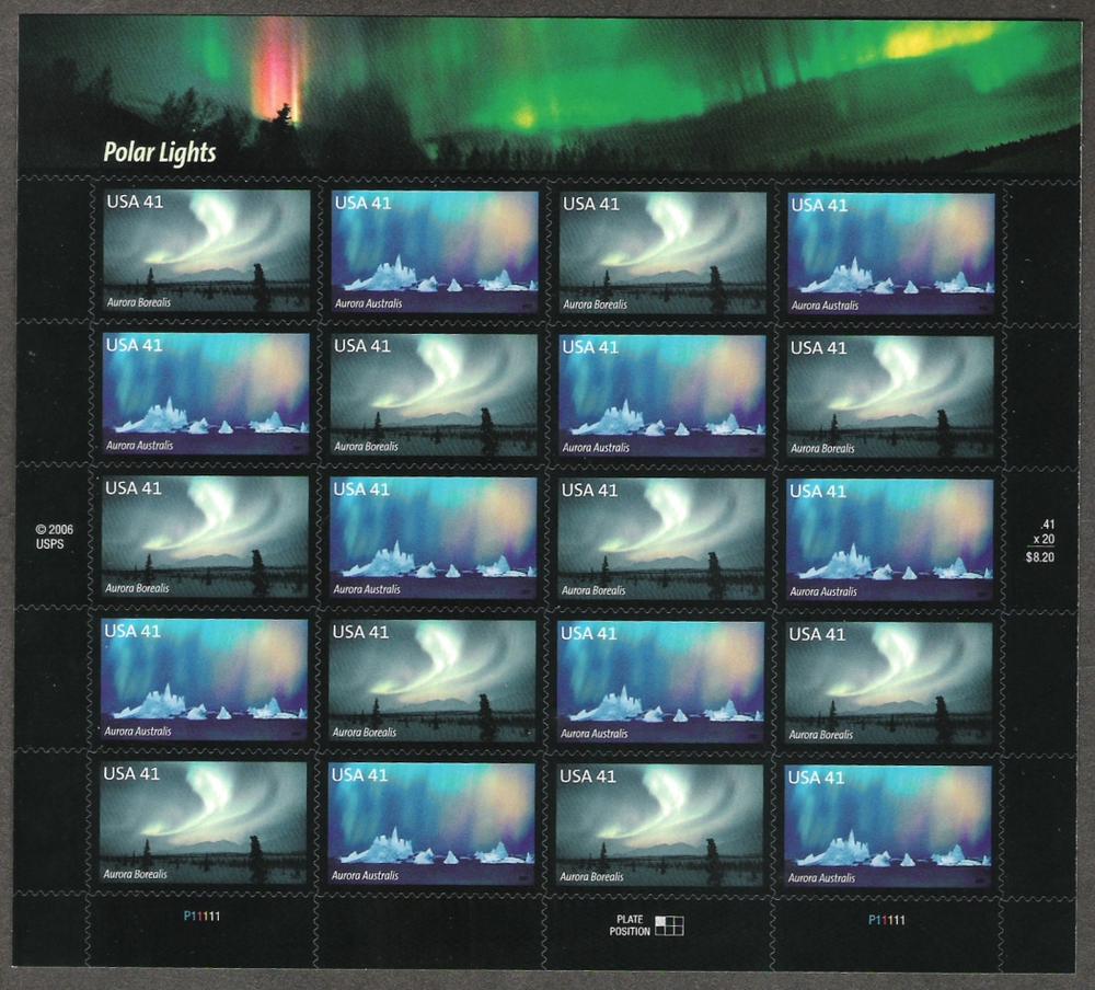4203-4204 POLAR LIGHTS PANE OF 20 UNFOLDED MNH