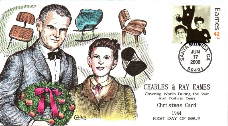 #4333a Christmas Card - Charles and Ray Eames first day cover by Fred Collins. Postmark State: CA City: Santa Monica Year: 2008 Month: 6 Day: 17