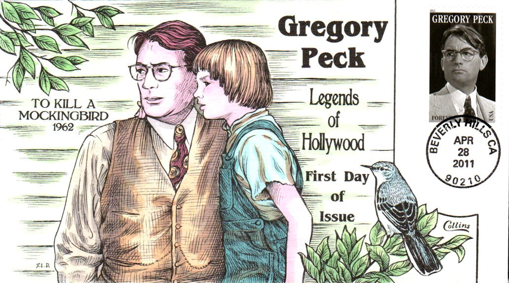#4526 Gregory Peck first day cover by Fred Collins. Collins' number is penciled on the reverse. Postmark State: CA City: Beverly Hills Year: 2011 Month: 4 Day: 28