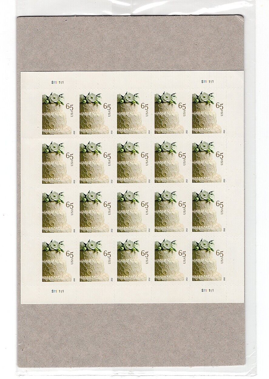 Grade: Superb #4602 65 cent 2012 wedding cake love stamp- sheet of 20 mnh-post office sealed!!#4602 65 cent 2012 wedding cake love stamp- sheet of 20 mnh-post office sealed!!Carefully packaged for shipping. Very po ... Read More