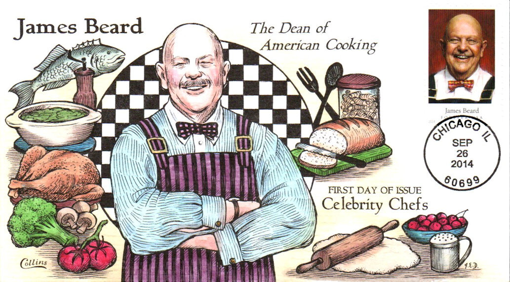 #4925 James Beard - Celebrity Chefs first day cover by Fred Collins. Postmark State: IL City: Chicago Year: 2014 Month: 9 Day: 26Seller Information
