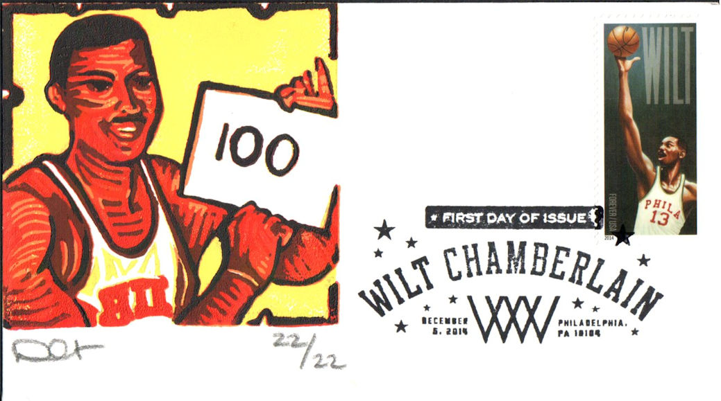 #4950 Wilt Chamberlain first day cover by Dave Curtis. The upper center edge is creased. Postmark State: PA City: Philadelphia Year: 2014 Month: 12 Day: 5Seller Information