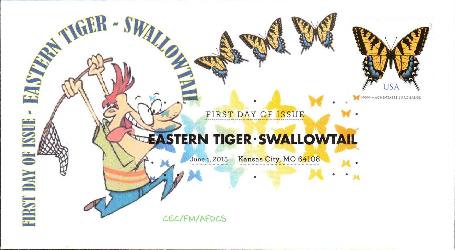 #4999 Eastern Tiger Swallowtail Butterfly first day cover by American First Day Cover Society - CEC/FM. The lower left corner is creased. Postmark State: MO City: Kansas City Year: 2015 Month: 6 Day: 1Seller Information