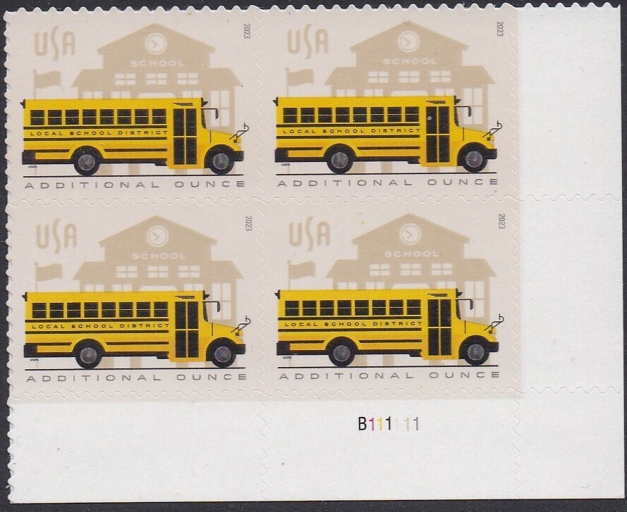 5740 School Bus Plate Block MNH