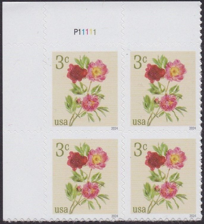 5899 Peonies Plate Block MNH