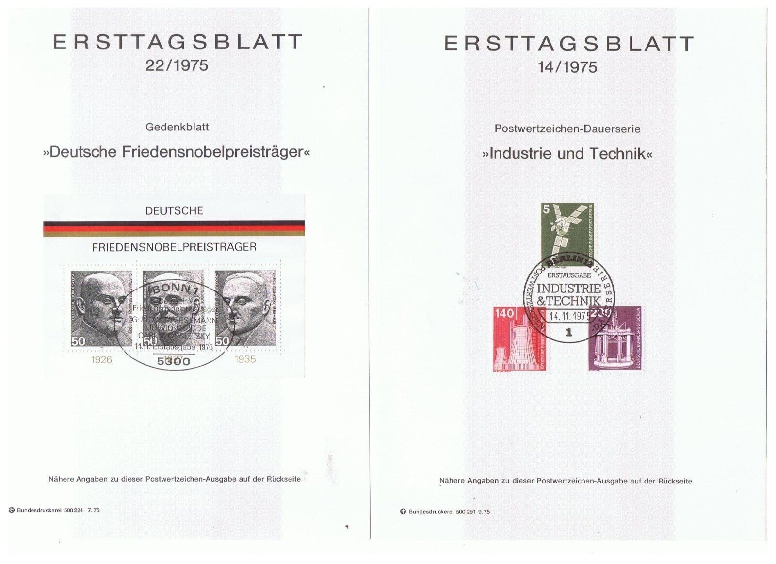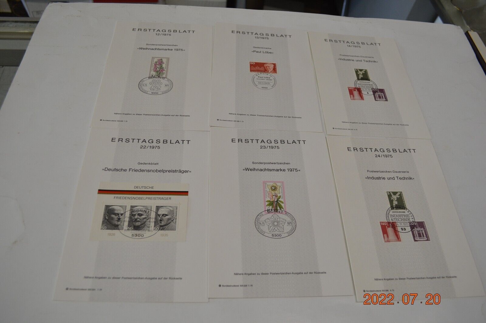 6 German "Ersttagsblatt" from 1975