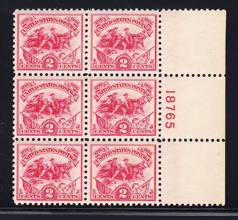 #628 XF/NH plate block. Light crease on bottom horz row but no perf seps. Buyer to pay $4.55 certified shipping. 28+ year APS member.
