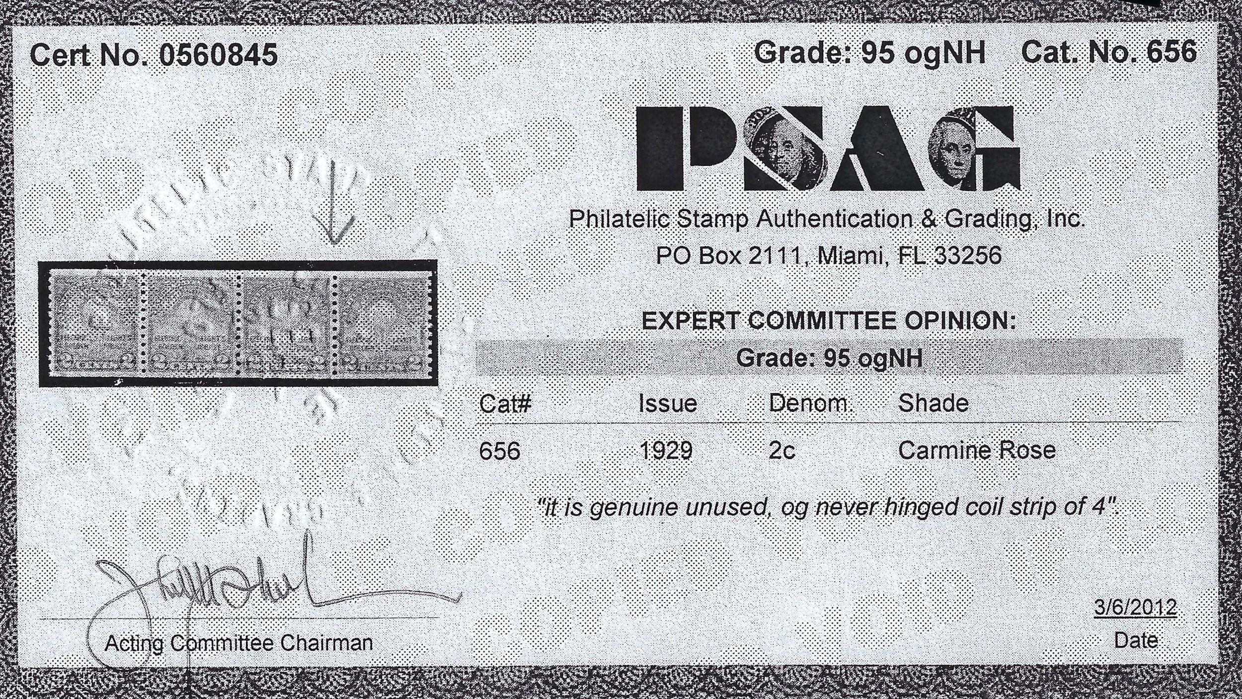 1900-40 unused and graded stamps2 cents edison, coil pair with photo of psag certificate graded "95ognh"