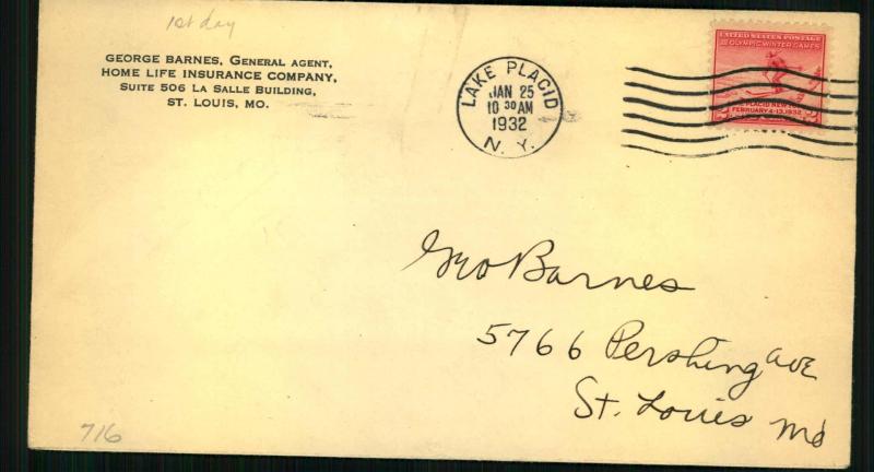 Offered Today is another group of first day covers. The Cover you are purchasing is #716 1932 Olympic Games! Buyer to pay within 10 days. Cash, money order or paypal accepted.