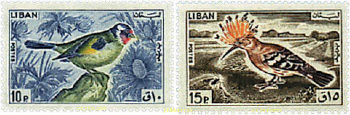 Ref.SEG-BSC-733195 HINGED LIBANO 1965 AVES Serie corta de 2 valores Michel: 894/899 Yvert: 250/255 Domfil: 965.14/19