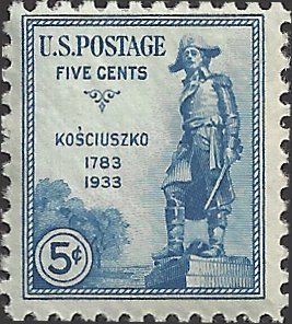 # 734 Mint Hinged Blue Kosciuszko