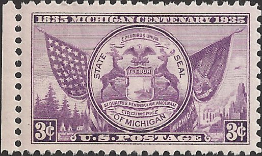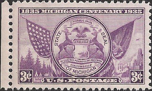 # 775 MINT NEVER HINGED MICHIGAN CENTENARY