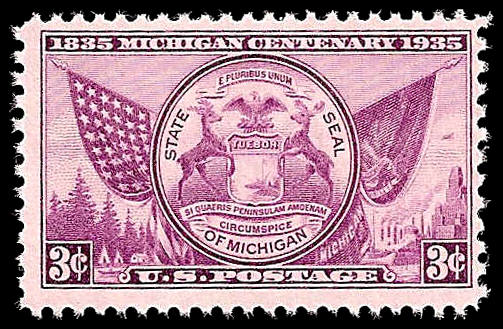 # 775 MINT NEVER HINGED MICHIGAN CENTENARY