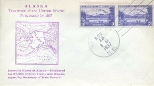 Grade: Ungraded#800 - p 159 us terriorials series - alaska fdc 1937 . Magenta cachet by an unknown designer. Official washington, dc 2nd day cancel. Erased address. Planty cv $40 powered by sixbit's ecommerce solution