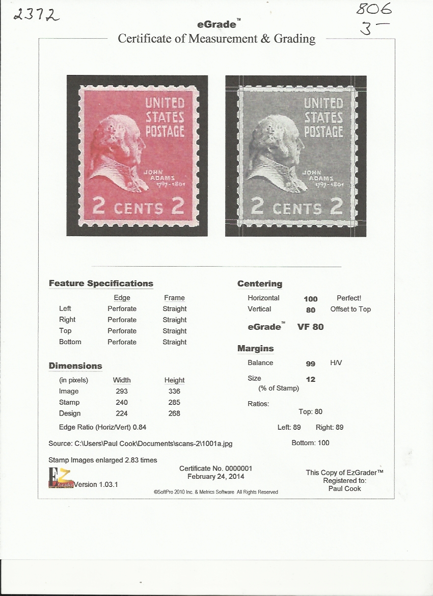 # 806 MINT NEVER HINGED JOHN ADAMS VF+