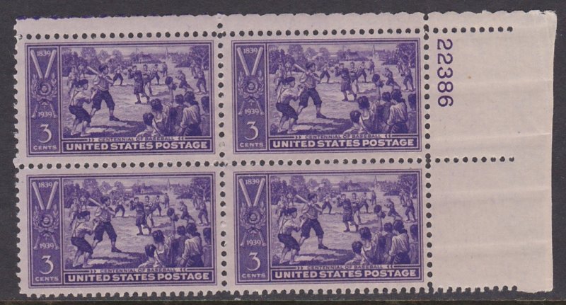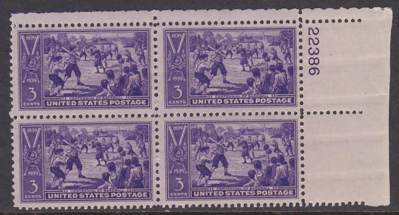 855 Baseball Centennial Plate Block MNH
