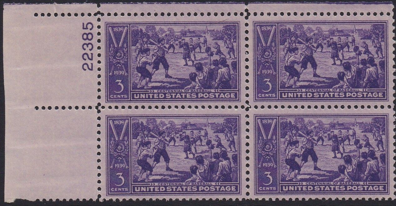855 Baseball Centennial Plate Block MNH