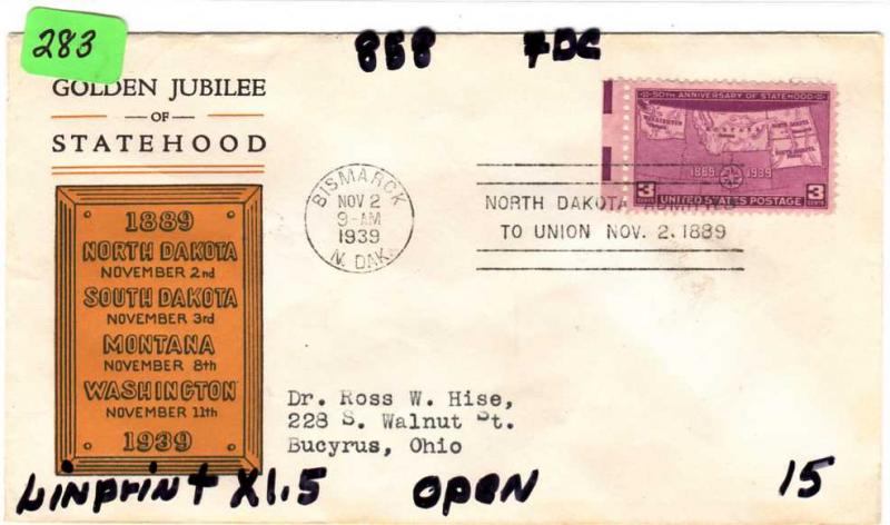 #858, FDC, LINPRINT, CV=$10.00, (2012)