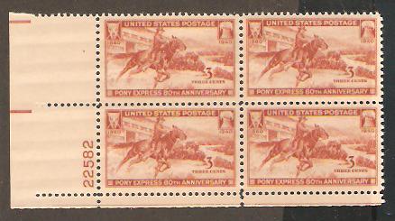 #894 Pony Express Plate Block Mint NH