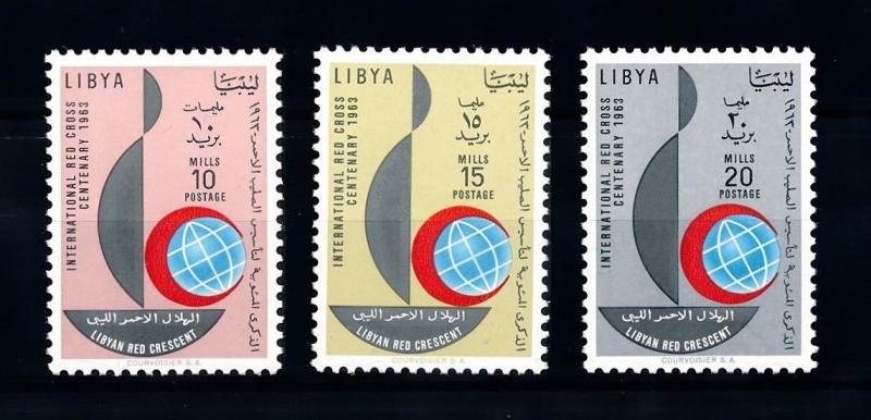 [91012] LIBYA 1963 CENTENARY RED CROSS MNH Mint Never Hinged Very Fine ConditionCatalogue numbers according to michel if noted130-132