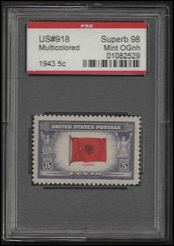 05-13-14 # 918 mint never hinged albania p.S.E. Grade 98 cert # 01082529 The pictured u.S. Postage stamp shows the stamp you will receive.