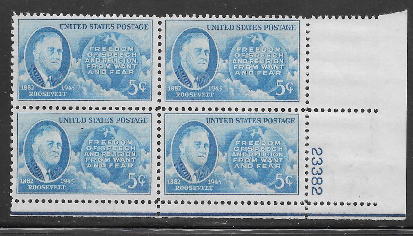 #933 MNH Plate Block