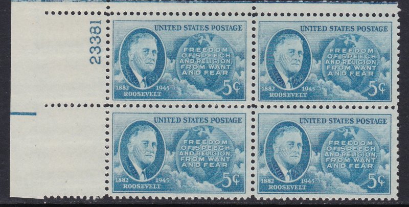 933 Roosevelt Plate Block MNH