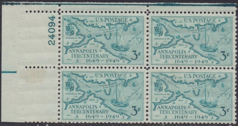 984 Annapolis Tercentenary Plate Block MNH