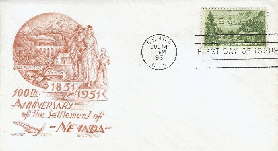 #999 - M 7 3c NEVADA FDC 1951. Cachet Craft - Ludwig Staehle cachet. Unaddressed. Powered by SixBit's eCommerce Solution