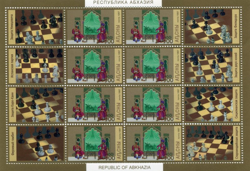 Abkhazia (Georgia) 1997 CHESS HISTORY Sheet (8)+label Perforated Mint(NH) RARE