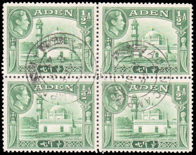 1/2a KGVI Aldrus Mosque with Aden Camp postmark Block of four. Used.